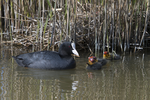 Helaas kon ik soms niet zo dichtbij komen als ik gewild had, maar het was zeer zeker een genoegen. Het is me gelukt de Nachtegaal vast te leggen die daar soms om de 100 meter voor kwam, de waaiende Tapuiten op het strand en al een Meerkoet met jonkies. Geniet maar mee!